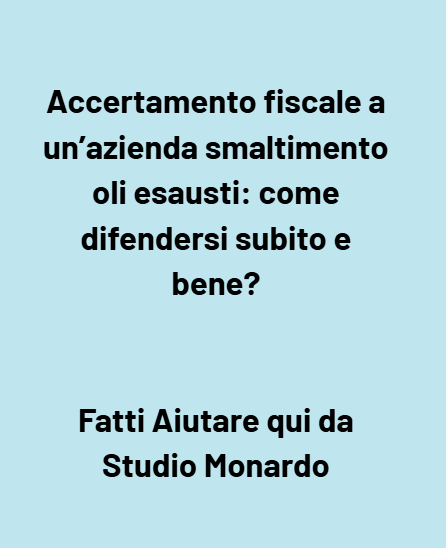 Se la tua azienda nel settore degli oli esausti ha ricevuto un accertamento o è sommersa dai debiti, non aspettare che arrivi la cartella esattoriale o l’ipoteca. Contatta subito l’Avv. Giuseppe Angelo Monardo per una consulenza personalizzata. Lui e il suo staff sapranno analizzare la tua situazione e costruire una strategia legale concreta e tempestiva per difenderti e risanare la tua impresa.