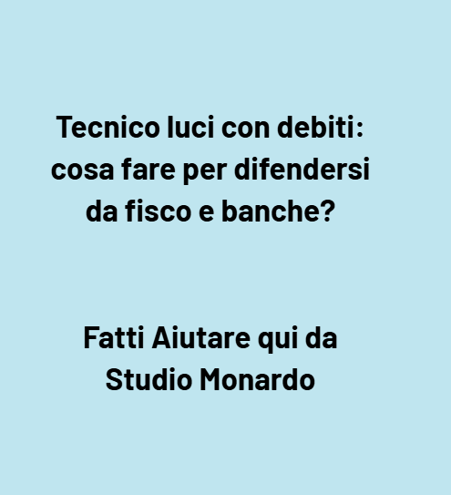 La professione del tecnico luci, oggi centrale in ambito teatrale, cinematografico, musicale e televisivo, richiede competenze specialistiche, attrezzature costose e spesso comporta rapporti da lavoratore autonomo o da piccolo imprenditore. Se da un lato questa flessibilità consente di lavorare in diversi contesti, dall’altro espone a oneri fiscali e contributivi complessi. La crisi economica, la volatilità del settore dello spettacolo e la gestione talvolta inesatta dei pagamenti possono portare a un accumulo di debiti verso l’erario, gli enti previdenziali o le banche. Trovarsi con cartelle esattoriali, avvisi di accertamento o richieste di rientro dal credito bancario può essere devastante per un professionista che vive del proprio lavoro manuale.