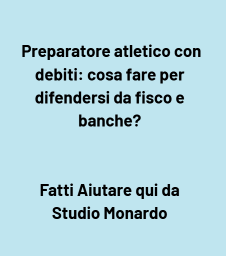 📩 Se sei un preparatore atletico (o un altro professionista) oberato da debiti fiscali o bancari, contatta subito l’avv. Giuseppe Angelo Monardo per una valutazione legale personalizzata. Analizzeremo il tuo caso, verificheremo la legittimità degli atti e ti proporremo le migliori strategie per salvaguardare il tuo patrimonio e la tua attività.