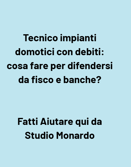 Se sei un tecnico domotico in difficoltà e vuoi proteggere il tuo patrimonio e il tuo futuro professionale, contatta subito l’Avv. Giuseppe Angelo Monardo: potrai ricevere una consulenza personalizzata e intraprendere le strategie più efficaci per bloccare pignoramenti, ipoteche, fermi amministrativi e cartelle. Agire ora è il primo passo per riprendere il controllo della tua vita e della tua attività.