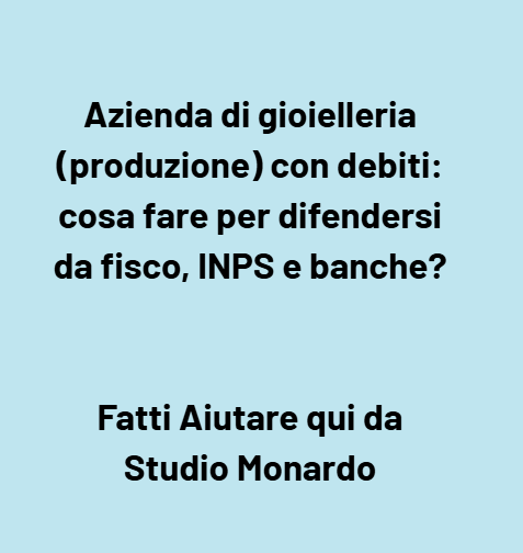 📞 Contatta subito qui di seguito l’Avv. Giuseppe Angelo Monardo per una consulenza personalizzata: lui e il suo staff di avvocati e commercialisti sapranno valutare la tua situazione, bloccare le azioni esecutive e costruire una strategia concreta e tempestiva per salvaguardare la tua azienda di gioielleria.