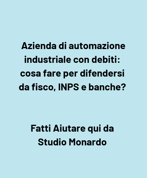 In questa sezione rispondiamo a più di 15 quesiti ricorrenti posti dagli imprenditori di aziende di automazione industriale alle prese con debiti verso Fisco, INPS e banche. Le risposte sono generali e non sostituiscono una consulenza personalizzata.