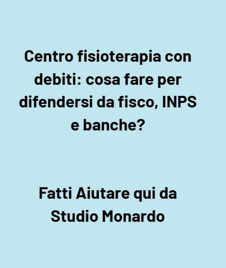 Non aspettare che la situazione peggiori: contatta subito l’Avv. Giuseppe Angelo Monardo per una consulenza personalizzata. Insieme al suo team, saprà valutare la tua posizione, scegliere la strategia più adatta e difenderti efficacemente da fisco, INPS e banche. Una valutazione tempestiva è il primo passo per tutelare il tuo centro di fisioterapia, proteggere il tuo patrimonio e tornare a concentrarti sul benessere dei pazienti.