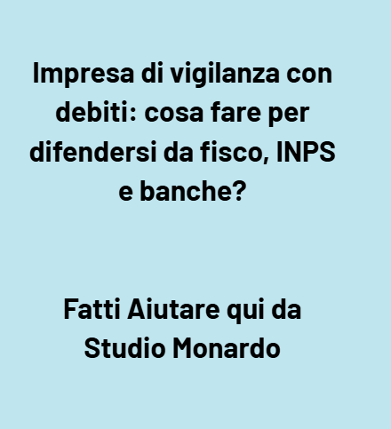 Scenario: una ditta individuale che gestisce servizi di vigilanza ha debiti verso il fisco (40.000 euro), l’INPS (20.000 euro) e le banche (30.000 euro). Il fatturato annuale è 60.000 euro; il titolare possiede un’auto e una piccola abitazione. Non ha dipendenti, ma collabora con guardie giurate in regime di co.co.co.