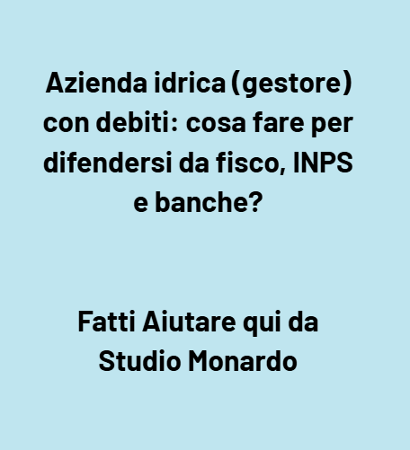 L’assistenza di professionisti specializzati è indispensabile. L’Avv. Giuseppe Angelo Monardo, cassazionista e gestore della crisi da sovraindebitamento, con il suo team di avvocati e commercialisti, offre consulenza a 360°: analisi degli atti, predisposizione di ricorsi, sospensioni, trattative con l’AdER e l’INPS, piani di rientro, transazioni fiscali, composizione negoziata e procedure di sovraindebitamento. La sua esperienza come esperto negoziatore della crisi d’impresa lo rende il partner ideale per difendere i gestori idrici contro le pretese del fisco, dei creditori e delle banche, garantendo la continuità del servizio.