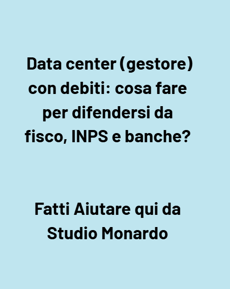 Gestire un data center significa sovrintendere infrastrutture vitali per la conservazione e l’elaborazione di dati digitali. In un contesto in cui la domanda di servizi informatici e di cloud computing cresce rapidamente, l’imprenditore che gestisce un data center è chiamato a investire continuamente in hardware, software, sistemi di sicurezza, ridondanza energetica e competenze specialistiche. Non di rado questa spinta alla crescita porta ad assumere impegni finanziari significativi: finanziamenti bancari per l’acquisto di server, leasing per l’impiantistica, fatture dei fornitori, versamenti tributari e contributivi. Se alcuni di questi debiti restano insoluti, il Fisco, l’INPS o le banche possono azionare procedure esecutive (cartelle, avvisi di addebito, pignoramenti e iscrizioni ipotecarie) che mettono a rischio la continuità aziendale e il patrimonio del gestore.