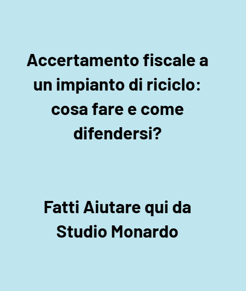 Introduzione L’accertamento fiscale a carico di un impianto di riciclo non è un’ipotesi remota: si tratta di una procedura che