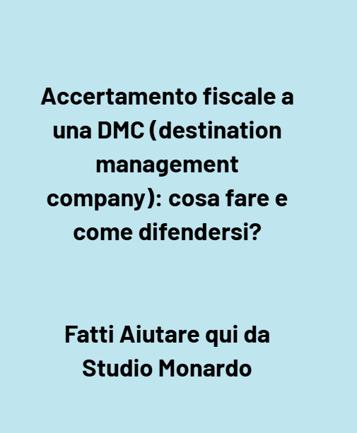 Introduzione L’accertamento fiscale è uno dei momenti più delicati nel rapporto fra Fisco e contribuente. Una Destination Management Company (DMC)