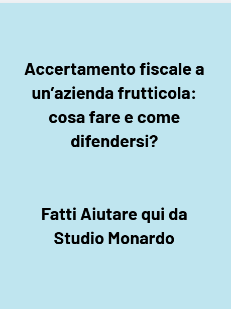 Se hai ricevuto un avviso di accertamento o temi un controllo imminente sulla tua azienda frutticola, non aspettare: ogni giorno è prezioso per far valere le tue ragioni, raccogliere documenti e prevenire l’esecuzione di cartelle, ipoteche o pignoramenti.