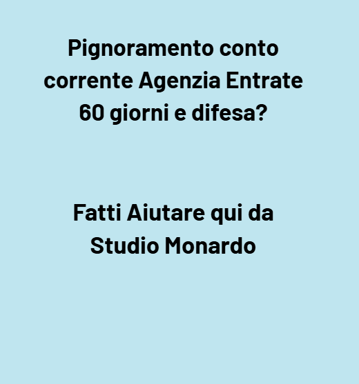 Nel linguaggio comune si dice “Agenzia Entrate ti può pignorare dopo 60 giorni”. In realtà i 60 giorni più rilevanti per il conto corrente sono almeno due, con funzioni diverse: