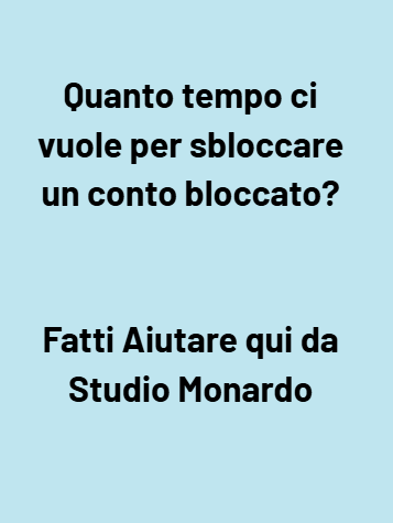 - Effetti sui rapporti professionali e familiari. Il blocco in caso di decesso dell’intestatario priva gli eredi di disponibilità immediata fino alla presentazione della dichiarazione di successione , mentre il blocco per verifica antiriciclaggio può durare finché non vengono forniti documenti idonei .