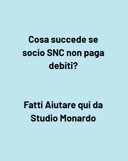 Se sei socio di una SNC e stai affrontando debiti fiscali o di altra natura, questo articolo fa per te. Alla fine potrai contattare direttamente lo studio per una consulenza personalizzata.