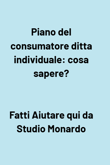 - Cos’è il piano del consumatore per ditta individuale? È una procedura di composizione della crisi riservata alle persone fisiche (anche titolari di partita IVA) con debiti prevalentemente personali o residui d’impresa. Consiste in una proposta di pagamento rateale e/o ridotto dei debiti, omologata da un tribunale. Vengono tutelati i creditori privilegiati (liquidandoli secondo l’ordine di prelazione) e garantita la sostenibilità del piano per il debitore .