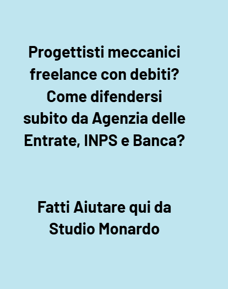 Lo studio legale dell’Avv. Giuseppe Angelo Monardo è a disposizione per assistere i progettisti meccanici e ogni lavoratore autonomo in difficoltà con l’Agenzia delle Entrate, l’INPS e le banche. Grazie alla qualifica di cassazionista, all’esperienza come gestore della crisi da sovraindebitamento e come esperto negoziatore della crisi d’impresa, l’avv. Monardo coordina un team di professionisti capace di elaborare soluzioni personalizzate: dalla verifica delle cartelle e degli avvisi al ricorso giudiziale, dalla sospensione dei pignoramenti alla redazione di piani di rientro, fino all’accesso alle procedure concorsuali.