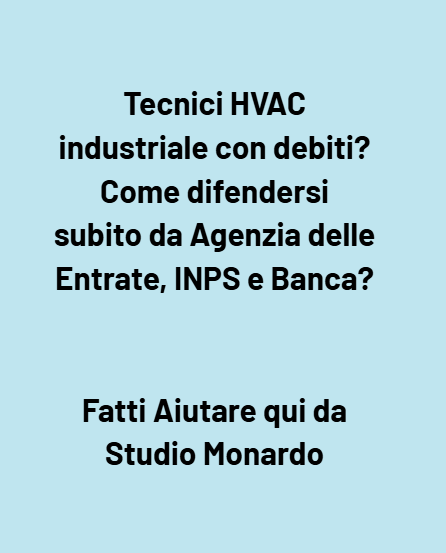 Tecnico HVAC industriale con debiti? Come difendersi subito da Agenzia delle Entrate, INPS e Banca