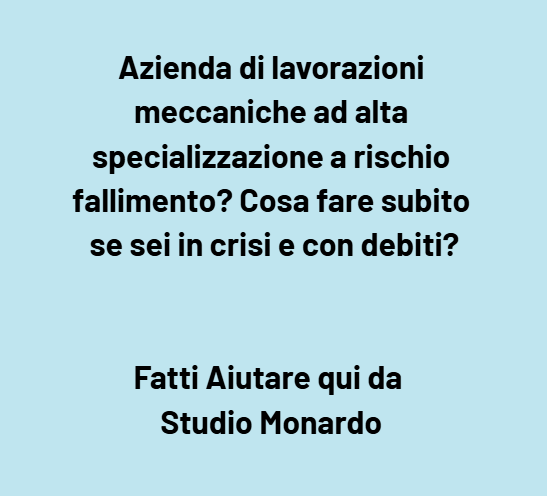 Introduzione Se la tua ditta di lavorazioni meccaniche, nonostante l’alta specializzazione, è in grave difficoltà finanziaria e con debiti che