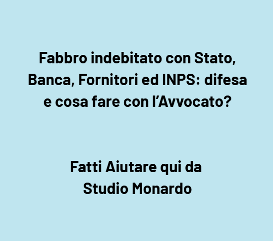 Fabbro indebitato con Stato, Banca, Fornitori ed INPS: difesa e cosa fare con l’Avvocato