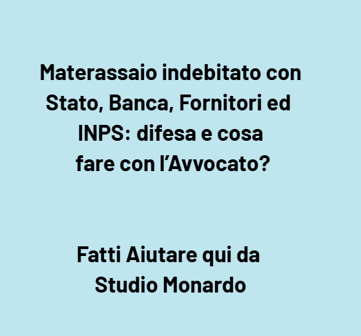 Materassaio indebitato con Stato, Banca, Fornitori ed INPS: difesa e cosa fare con l’Avvocato