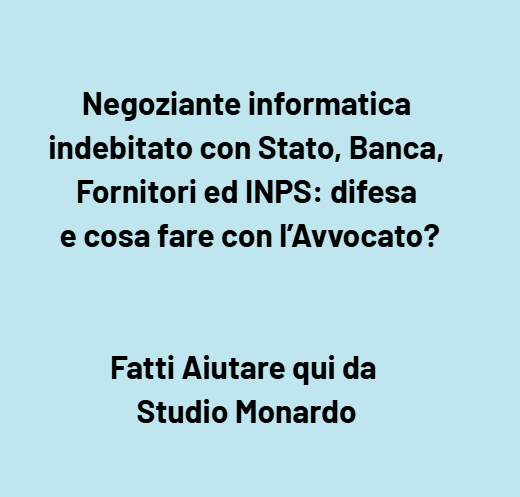 Negoziante di informatica indebitato con Stato, Banca, Fornitori ed INPS: difesa e cosa fare con l’Avvocato
