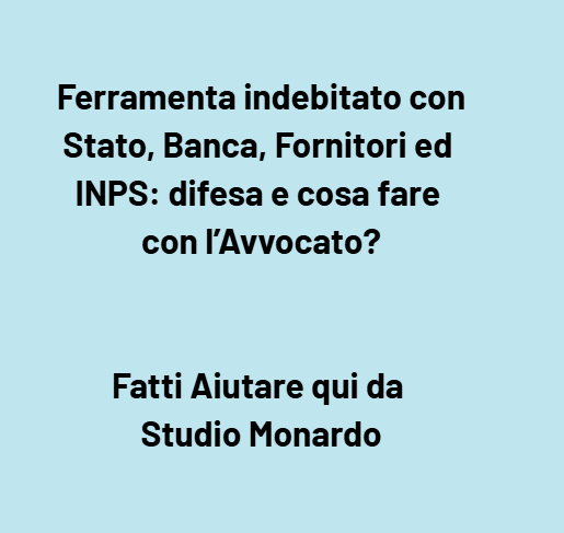 Negozio di ferramenta indebitato con Stato, Banca, Fornitori ed INPS: difesa e cosa fare con l’Avvocato