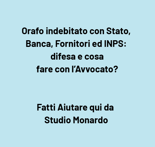 Orafo indebitato con Stato, Banca, Fornitori ed INPS: difesa e cosa fare con l’Avvocato