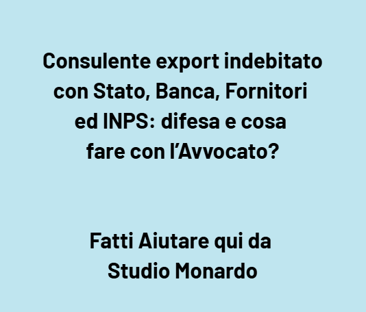 Consulente export indebitato con Stato, Banca, Fornitori ed INPS: difesa e cosa fare con l’Avvocato