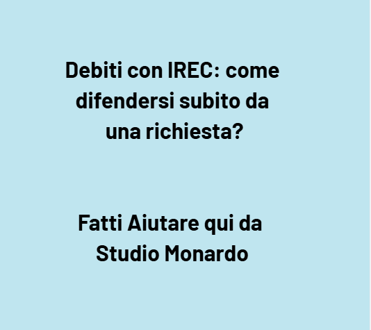 Lo studio Monardo può aiutarti concretamente fin dalle prime fasi: analizziamo l’atto di IREC, valutiamo la legittimità del credito (durata del rapporto, prescrizione, interessi applicati), prepariamo ricorsi o opposizioni (ad esempio a un decreto ingiuntivo), richiediamo sospensioni delle azioni esecutive, negoziamo piani di rientro vantaggiosi e, se necessario, attiviamo soluzioni giudiziali o stragiudiziali personalizzate. In poche parole, affrontiamo il problema “a 360°” per bloccarti subito solleciti, pignoramenti o ipoteche.