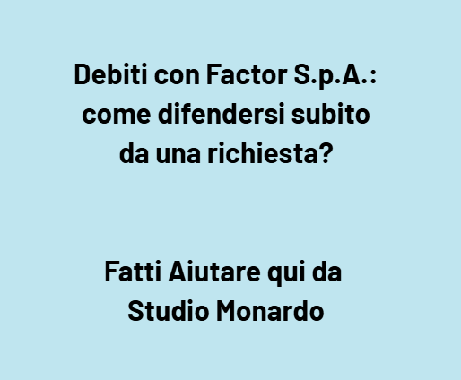 Introduzione. In Italia sempre più soggetti (aziende, professionisti, privati) ricevono intimazioni di pagamento da società di factoring come Factor S.p.A.,